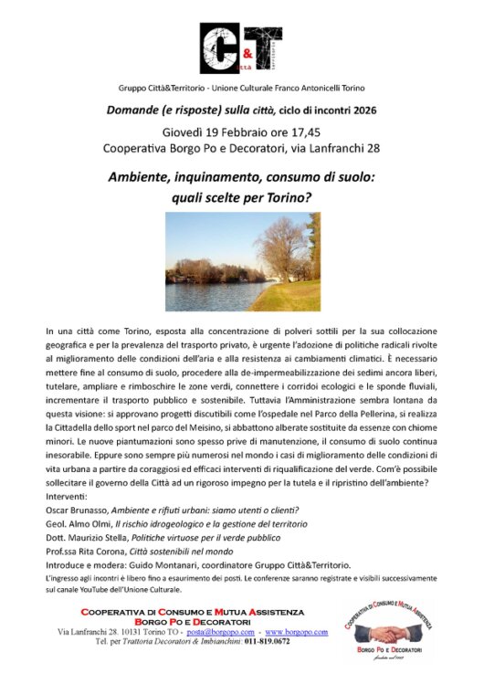 Nata dalla fusione di due preesistenti società di mutuo soccorso -- l'Associazione Generale di M.S. fra Operai Decoratori e Pittori d’appartamenti di Torino, fondata nel 1883 e la Società di M.S. Corale Po e Borgo Po, nata nel 1899 che si accordarono dapprima per la coabitazione e poi per la fusione nell’attuale palazzina, costruita tra il 1909 e il 1911, con giochi di bocce e pergolato in via Lanfranchi 28 -- la Cooperativa di Consumo e Mutua Assistenza Borgo Po e Decoratori è una società i cui soci posseggono una quota uguale con la quale contano in modo paritario. La nostra cooperativa per statuto assolve la funzione sociale di difesa del potere d’acquisto e della crescita culturale dei soci perseguendo lo scopo mutualistico.